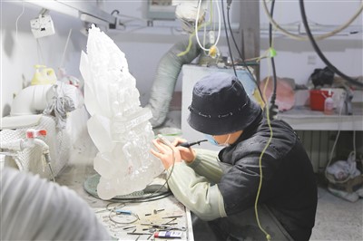 打坯、粗磨、修型、抛光……祥巨水晶有限公司车间内,水晶雕刻名师、全国技术能手刘凌峰正坐在一台高速运转的打磨机前,一手持水枪、一手拿钻头,同时还进行着直播,“我们的水晶创作雕刻,就是要把水晶不完美的地方变成完美,通过抛光、喷砂等工艺手法,将其最好的一面展现给大家。”