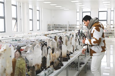 但“世界水晶之都”早已走上了转型道路。在矿石资源保护性开发的生态红线约束下,当地已不再开采水晶。东海人走出国门,从世界各地采购水晶原石,运回东海县集中加工和创意研发。