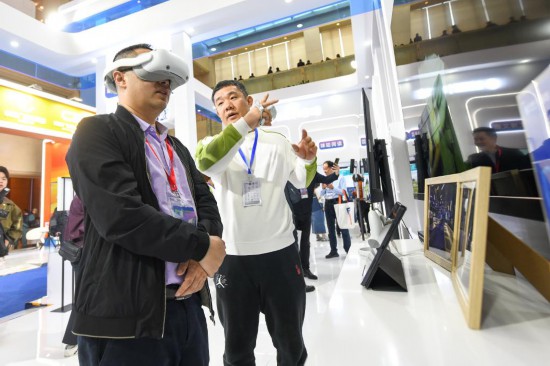3月28日,人们在第十一届中国网络视听大会“新技术与精品节目展”展厅参观。新华社记者 胥冰洁 摄