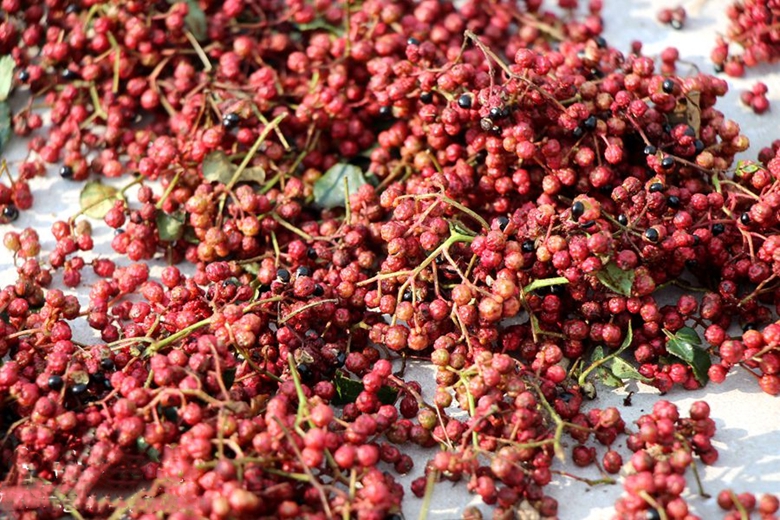 不同于花椒的平铺晾晒